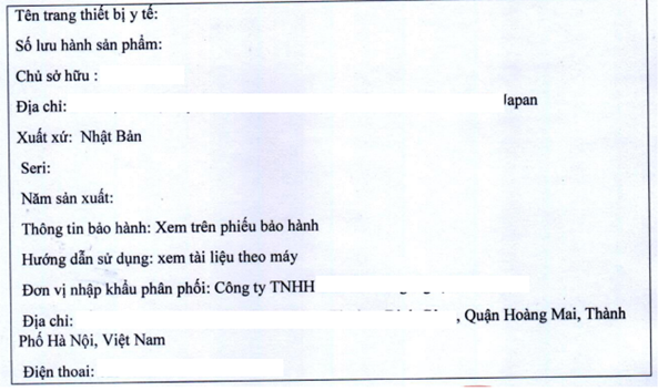 – Tên và địa chỉ chủ sở hữu số lưu hành trang thiết bị y tế;