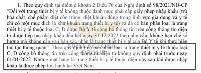 Thời gian qua, vì sự mẫu thuận trong chỉ đạo của Bộ Y tế và thực hiện của Hải quan Hồ Chí Minh dẫn đến tình trạng rất nhiều hàng hóa loại C,D không thuộc Thông tư 30 – chỉ cần bản phân loại đã bị giữ lại, không thể thông quan tại Cát Lái và Tân Sơn Nhất.